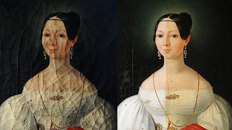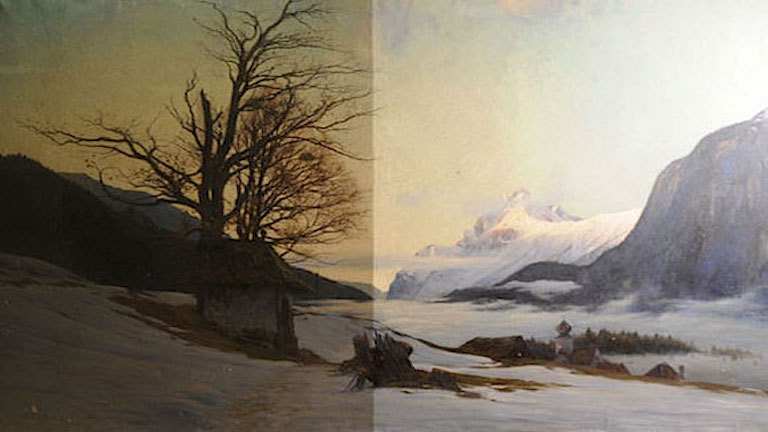 Gemälde und Rahmen materialgerecht konserviert und instand gesetzt.
